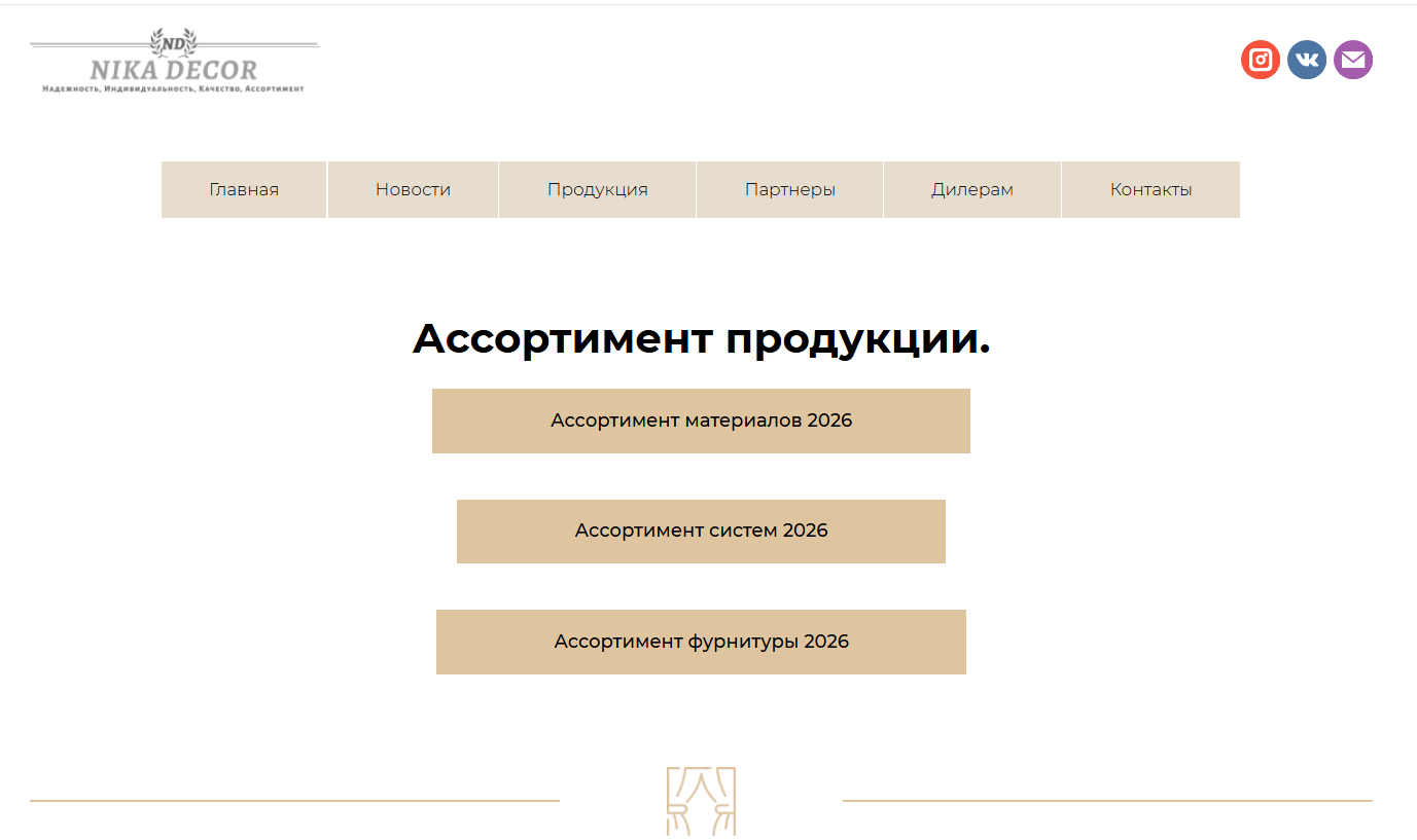 Ассортимент материалов 2026